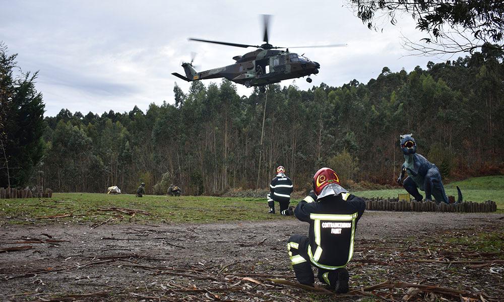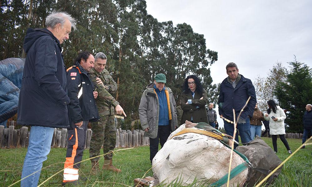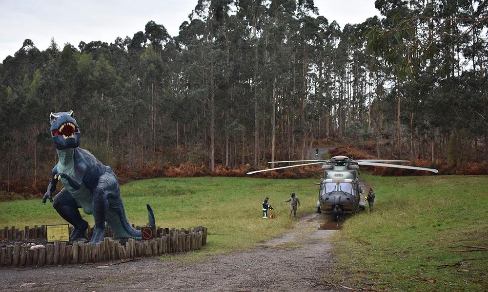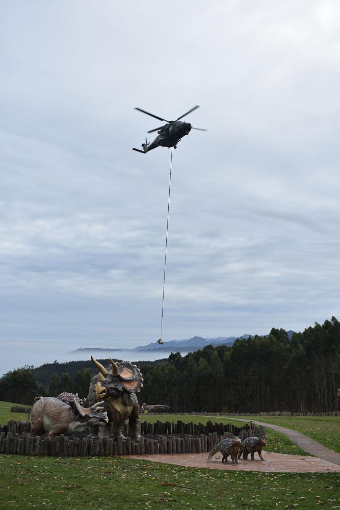 Ir a Imagen El MUJA recupera dos nuevos bloques con restos fósiles de un gran dinosaurio saurópodo con la ayuda del helicóptero de las Fuerzas Aeromóviles del Ejército de Tierra